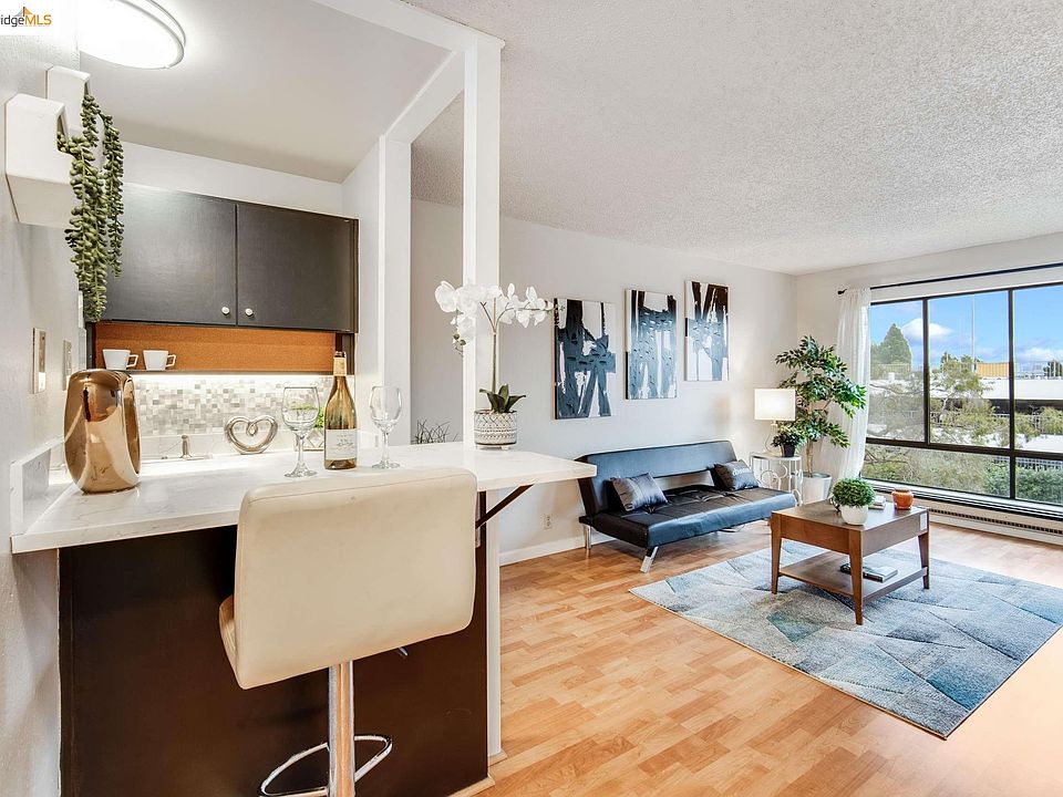 Welcome to your resort-style home with plenty of upgrades! Located at the edge of Emeryville, this newly updated unit features large windows with a lot of sunlight and a functional floor plan. The modernized bathroom is completed with a brand new vinyl plank flooring, vanity, mirror, faucet and light fixture. This bathroom surface remodel also includes a refinish to the tub and surround and a fresh coat of paint. The open kitchen is highlighted by a tiled backsplash and a countertop bar overhang. The unit also comes with one deeded parking space and extra storage space. This home is move-in ready! Enjoy a glass of wine or your morning cup of coffee on your large private balcony! Take advantage of all the amenities the Watergate community has to offer - heated swimming pools, hot tubs, saunas, full size gym, tennis courts, clubhouse, EV charging, 24-hour security, and more. Just minutes from restaurants, grocery stores and other conveniences! Take a stroll to the nearby Emeryville Marina Park, bike/walk along the seashore surrounded by water, or zip over to San Francisco within 15 minutes by car. Free Emery-Go-Round shuttle to Bart. YES - FHA and VA approved!