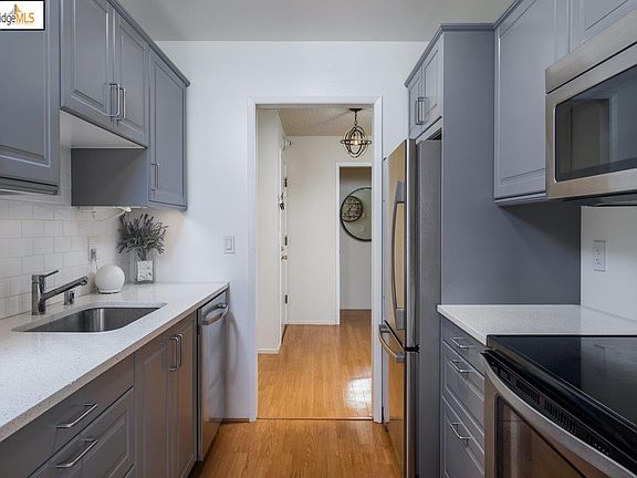 Look no further! Designer Remodel, Top Floor, Corner Unit, Spacious Floor Plan! Quiet and serene location sports gleaming SS Kitchen Appliances, wood style floors, cedar lined walk-in closet, large interior Storage Room and much more. Come to trendy Emeryville and enjoy resort style living at its best. Dynamic complex with more recreational facilities than any other around: year-round heated swimming pools, hot tubs, saunas, full size gym, tennis courts, raquet-ball court, ping pong and a picturesque panoramic rustic boardwalk on the bay. Watergate Condos are located on the Emeryville Peninsula and are as close to San Francisco as you can possibly be without actually living in the city. Emeryville is an incredibly sought after city to live in with many upscale restaurants, designer shopping, movie theaters, bike & jogging trails, easy freeway access and much, much more. Truly a must see!! Location, Location, Location!! Don't let this rare opportunity pass you by. Check out the Video!