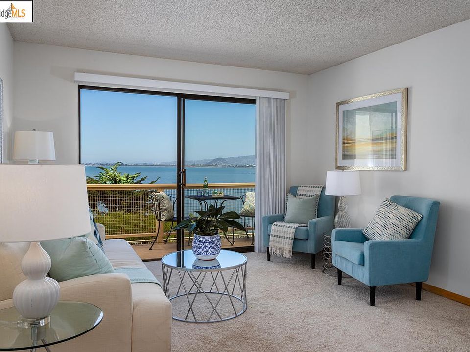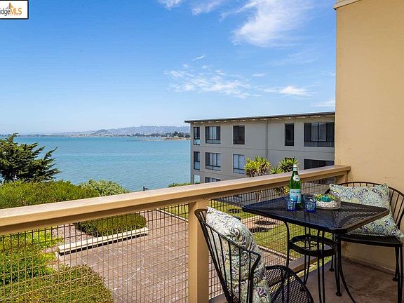 Light, bright and airy top floor 1 bedroom at Watergate with a view of the Bay and the Berkeley hills. Tastefully updated & upgraded with natural wood cabinets, granite counters and a full size dishwasher plus a brand new stainless steel refrigerator, new stainless steel smooth top range and hood and new stainless steel LG under-cabinet microwave for optimal counter space and convenience. Imaginatively redecorated bathroom with decorative tile tub surround and uniquely colorful vanity sink. Huge walk-in closet with large interior storage room set up to double as a home office for those who want a private space to work at home. Add Watergate's extensive resort facilities and central location just 15 min. to SF and you've found the perfect place in which to shelter.