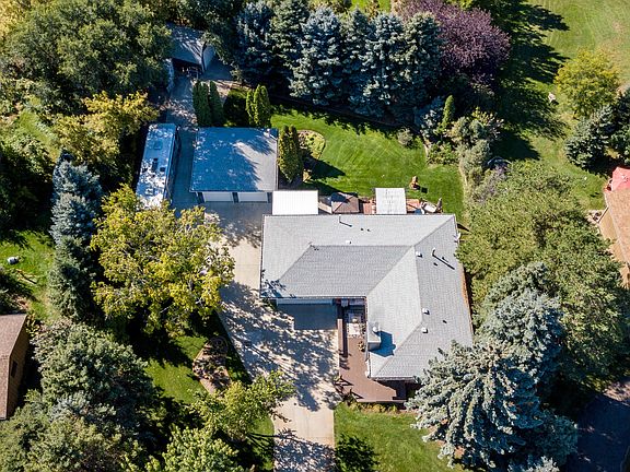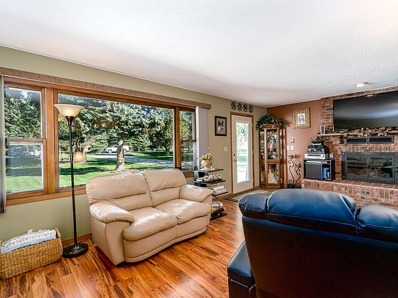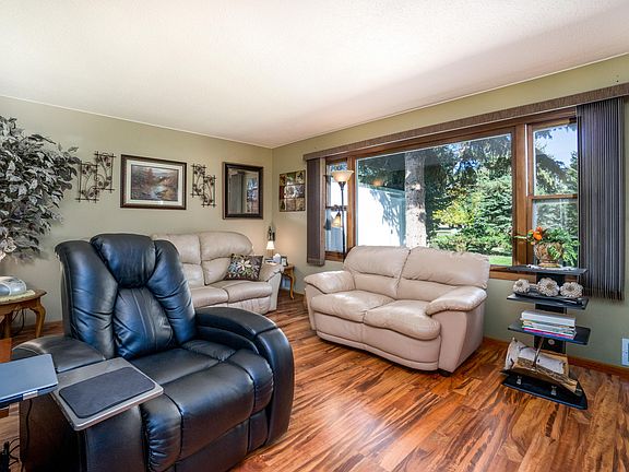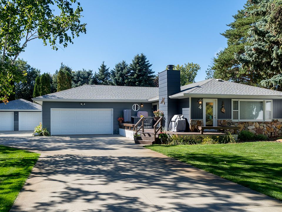 Down a quiet street near the river sits a beautiful ranch home with a brilliant navy blue color and white trim with Rock facade. The long driveway stretches through beautiful mature trees and lushly landscaped yard that offers all the privacy a person could ask for. The home features a 2 car attached, fully insulated and heated garage complete with a sink/wetbar, apoxy floor and floor pit with two outside access doors. The 2 car detached garage is also heated and insulated with an apoxy floor, perfect for the person with lots of toys or loves to do work in the garage! Need even more storage? This home features a large cold storage area perfect for all your tools and garden supplies. Need even more room? This home features a detached shed as well with remote garage door! Have an RV or toy hauler? No problem! There is plenty of room beside the garage with a huge camper pad with quick access to electricity! The backyard is an absolute peaceful paradise where you are surrounded by mature pines and lush landscaping! A large deck off the master bedroom lines the back of the home and is a perfect spot to relax in peace and tranquility. Don't miss the hot tub, it's negotiable with the sale of the home! Inside you'll find updated flooring, an updated kitchen counter tops and back splash too! You can cozy up in the living room next to the gas fireplace and gaze out from the living room's HUGE front windows to the beautifully manicured front lawn! The home also features main floor laundry, main floor master and an additional downstairs living room and bedroom too! Furnace, hot water heater and shingles all redone in 2014! This home has so much to offer, you just have to take a look for yourself!