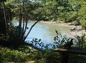 "Idyllic waterfront setting. You'll love the lower maintenance woodland gardens. First floor master suite plus two more bedrooms with en suite baths. First floor amenities include a spacious eat-in kitchen with a large work island, heated floor and a solarium perfect as a breakfast area or greenhouse for the plant lover. Also featured on the first floor are the laundry, 1/2 bath, a cozy den with gas stove, built-ins and an adjoining home office. The floor plan is excellent for house guests and entertaining. Other thoughtful features include, garage parking for up to 6 cars, a whole house generator, irrigation and custom garden lighting. Such a well thought out property will have you saying ""why didn't I think of that"" The neighborhood includes a PRIVATE BEACH and a tennis court for residents. Come and see for yourself."