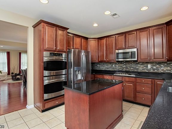 This meticulously maintained home has much to offer! Open floor plan, cathedral ceilings, hardwood floors, and walk-out finished basement with a full bath and office /5th bedroom make for a perfect in law suite or just additional entertaining space. These are just some of the finer points of this home! The gourmet kitchen with full size double ovens, granite counters,and an abundance of cabinets and large breakfast area open to family room, with sliders to deck that overlooks large fenced in yard for privacy. Family room is 2 story with recessed lighting and gas fireplace and has access to laundry and 2 car garages. 2nd floor offers 3 spacious bedrooms plus master suite with walk in closet and spa like bath. Minutes to Rt. 80, dining, shopping and NJ transit train.