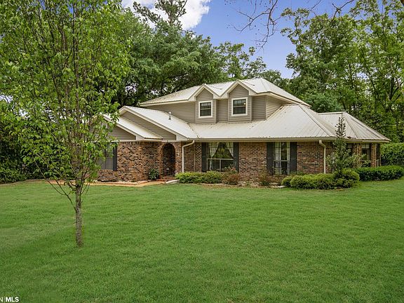 Great Location on quiet Cul-De-Sac in the Heart of Historic Spanish Fort Estates. Easy living floor plan with an updated kitchen that has a passthrough breakfast bar into two large connecting living areas. Kitchen is updated with a huge pantry, Stainless appliances, granite counter tops, Gas 5 burner cooktop, Island with a butcher block top, stainless vent hood, countertop trash chute, task lighting, farm sink, and perfect size eating/breakfast area surrounded by a bay window. The utility room has a sink, tons of cabinet space and room for an extra Refrigerator or freezer. The Primary suite is oversized with a sitting area, two large walk-in closets, and an updated bathroom with double vanities, extra cabinet space and a shower. Upstairs there are 3 large bedrooms with ideal sized closets that share a freshly updated bathroom with double vanities, ship lap walls, and subway tiled shower/tub combo. The bedrooms are carpeted but the landing area at the top of the stairs has a real cool soft cork floor that brings a really flavor to the upstairs. Another really great feature is the 2-car garage and a large 1 car carport, so you have plenty of parking options. This home has an incredible outdoor space with a large brick patio that is great for entertaining! The backyard also has a brick storage shed and sitting on a beautifully shaded fenced in lot. The lot is a half an acre also! One of the current owner’s favorite features of this home is all of the extra storage space! This home is in great shape and has no deferred maintenance! Come check it out!