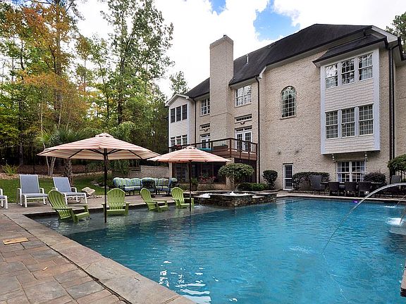 A Truly Elegant Home In Prestigious Heritage Pointe. Exquisite living with luxurious details, stunning travertine tile, gold leaf ceiling, custom drapery, four fireplaces, master retreat with dual sitting areas and triple sided fireplace, game rooms, home theatre and exceptional outdoor living. This home hosts, a balcony, terrace, enormous patio, screened porch, huge heated SALT WATER POOL and fenced area for the best in outdoor entertaining. Nhood allows animals and offers a walking trail to Jordan.