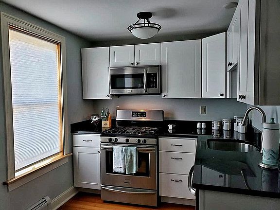 Centrally located in the heart of downtown Northampton. This first-floor unit offers two bedrooms, a gas fireplace, hardwood floors, one and a half baths, in-unit laundry, two dedicated parking spaces, a generous storage area, and a large deck. This is a well-cared-for unit in a small complex with three others. Pets are allowed and the other owners are all professionals. The apartment is recently renovated, including heat and central air. It is tucked in a quiet cul-de-sac one block from the Woodstar and the main street of Northampton (see video for a tour).