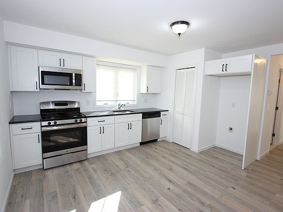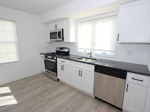Discover this newly renovated 2-bedroom, 1-bath apartment on the first floor of an owner-occupied two-family home. This bright, modern unit features an open-concept layout, seamlessly connecting the living room, dining area, and kitchen. The kitchen is beautifully updated with granite countertops and stainless steel appliances, ideal for cooking and entertaining. Additional highlights include central air and forced hot air heating, stylish tile floors, in-unit washer/dryer hookups, and recessed lighting throughout. Enjoy shared access to the yard, perfect for outdoor relaxation. A blend of comfort and convenience, this apartment is move-in ready! Landlord provides water, tenant responsible for all other utilities. Clean credit, proof of income, and interview required. NO PETS