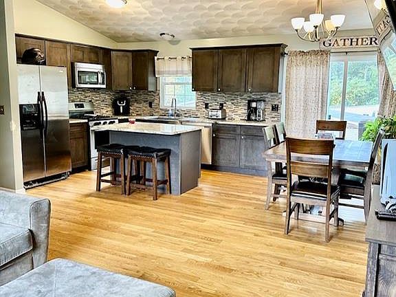 This Raised Ranch sits on a fenced-in corner lot that is perfect for family and friends, and entertaining. Open floor plan with Cathedral ceilings. The kitchen showcases Espresso cabinets and Stainless Steal appliances, Granite counters, Sliders to deck. Hardwood floors, Central Air, 3 Bedrooms, and a full bathroom. Lower level is finished with a hookup for a gas fireplace, full bathroom, laundry area, and attached garage. This home helps Pay for itself with Solar. All in walking distance to the water, and the park. A short drive to the marina, dog park. Make this home your own, and Enjoy your surroundings! Being Sold As Is!