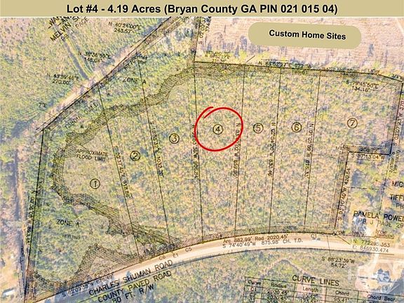 Cleared, Custom Home Site Lot #4 on 4.19 acres in the Ellabell Area with 162' Road Frontage. A small amount of Wetland on backside makes for everyday Views & Privacy while leaving plenty of Buildable Area for your Dream Home and tucked away off of Main Roads. Custom Builder in Place with many Designs to choose from, no Mobile Homes allowed. Homes Sites are located between Hwy 280 and Hwy 204, less than 7 Miles to I-16 & Hwy 280 Interchange, Less than 9 Miles to Hwy 80, Less than One Mile to Hwy 204, 20 Minutes to Pooler for Businesses, Shopping, Dining & Airport, 10 Minutes to Pembroke and 11 Miles to Ft. Stewart (Pembroke Gate).