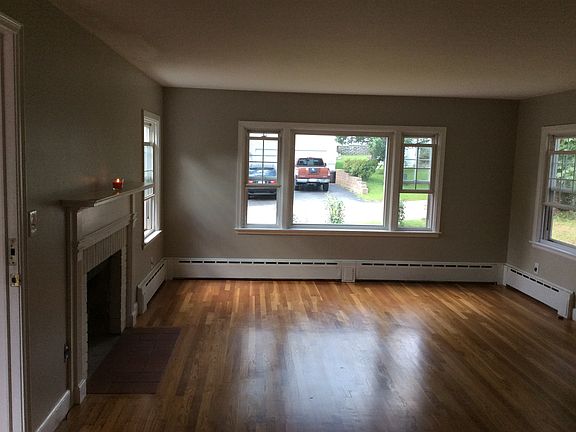 Completely remodeled 2 bdrm, 1 bath ranch with attached garage. Semi-finished dry basement with potential for 3rd bedroom. All new galley kitchen with SS appliances, hardwood throughout into dining with lots of light. Large living room with fireplace. All new: Roof, heating system/oil, oil tank. Finished one car garage into breezeway. All interior and exterior completely newly painted.