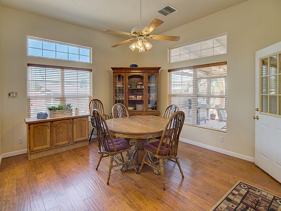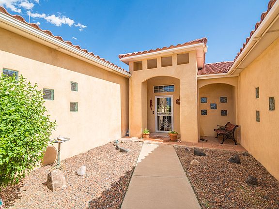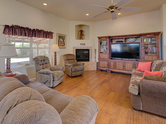 Your beautiful dream home is here! Step inside this gorgeous custom home and fall in love. Spacious kitchen opens to dining area and Great Room, perfect for entertaining or large family gatherings. Engineered Birch wood floors, lighted nichos, tall ceilings, arched entries and tons of natural light will greet you at the front door! Sep Mstr suite w/custom fireplace and spacious bathroom w/TWO showers! Enjoy quiet evenings on the private master patio complete w/hot tub and outdoor fireplace. Carry your indoor entertaining outside with the wrap around covered patio/ adobe walled courtyard and custom kiva fireplace with built-in seating. Notice the neighborhood Sandhill crane who love to be fed by the neighbors, this home has it all and will not disappoint!