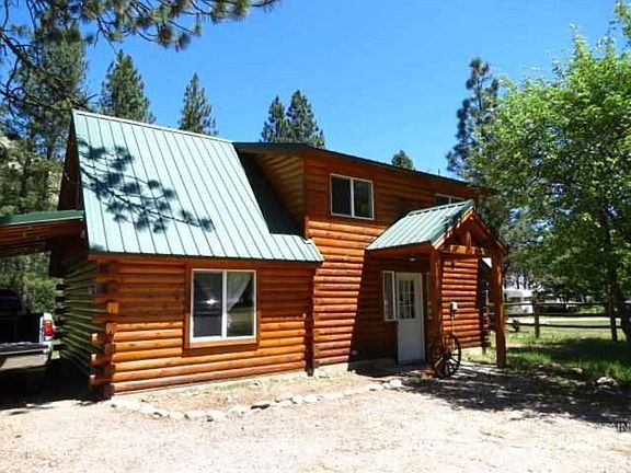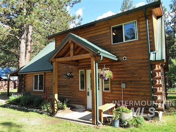 Adorable log cabin with Middlefork of the Payette River frontage. Hand-crafted log railings, accents & blue pine slab counter top. Tile floors. Corner propane woodstove. Upstairs loft area can be used as a bedroom or living room. Bathroom has stackable washer & dryer. Being used as successful vacation rental. Walking distance to BLM property at confluence of Middlefork & Southfork where there is good fishing. Subdivision has large, center, open common area & irrigation rights to each property. Raised garden beds, fire pit and hot tub. Listed at current appraised value.