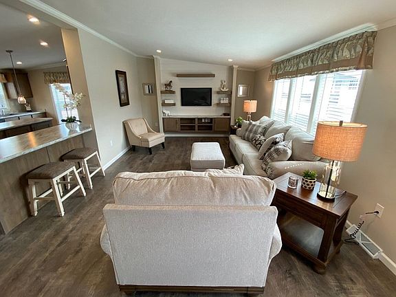 Gorgeous brand new manufactured home in an Active Over 55 Community. This home offers and open floor plan with a spectacular kitchen! Check out the Full Fridge/Full Freezer never seen before in these homes! 3 Bedroom & 2 Full Bathrooms. The Master Bedroom offers a pretty spectacular walk in Shower along with plenty of cabinet storage. 2nd Full Bath offers a Solar Tube for nice lighting. A dining room area with sliders to a side deck. Don't miss this wonderful home. First Open House December 19th 12-2 PM