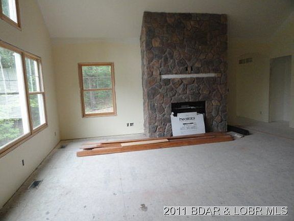 PRE FORECLOSURE FORCES SALE!!!! EXCELLENT OPPORTUNITY IS WAITING FOR YOU!! QUALITY CRAFTSMANSHIP in this country home nestled on 5 acres in a nice, new country subdivision. This home offers 4 bdrm, 4 baths, open concept with beautiful stone fireplace,light and airy feel, huge laundry room, covered back deck to enjoy the serenity, paved roads,and minutes from Camdenton schools. This home has many upgrades by the builder! 2X6 walls, cellulose insulation, and impeccable materials throughout. The builder is available for a private consult and to work with you on the on all finishing choices to suit your personal taste. This home at this price is in UNFINISHED condition.