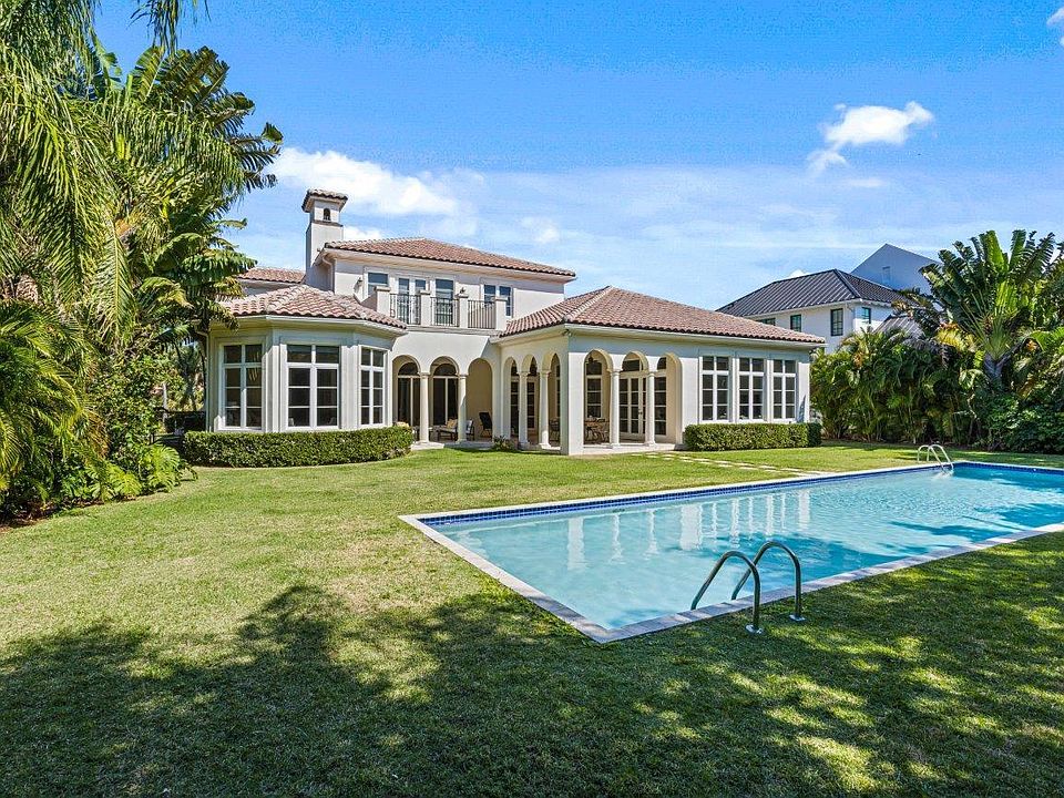 Private, parklike and peaceful on a large lot just one block to the ocean and the Ocean Ridge Park, a columned loggia overlooks the pool, set within a green-carpeted lawn, offering indoor/outdoor opportunities for relaxed family living and gracious entertaining.