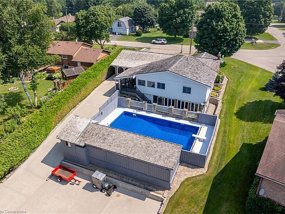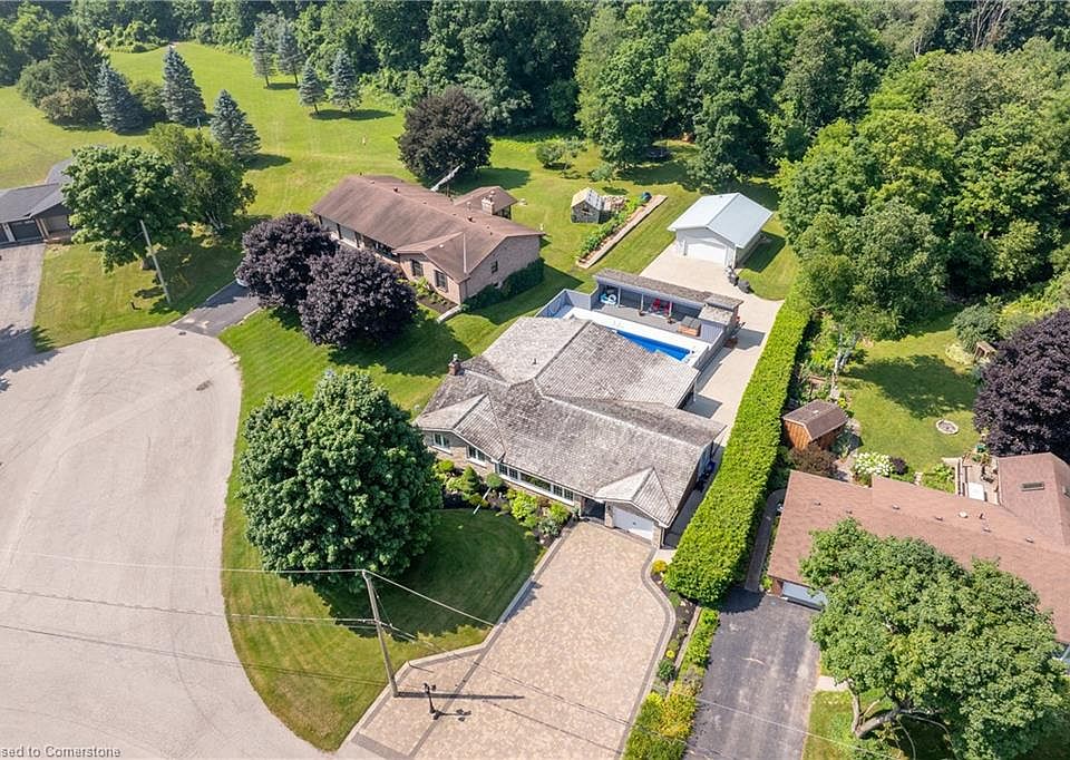 Immaculate Forest-Backed Home in Ayr Welcome to this beautifully updated home nestled on a quiet, tree-lined street in the heart of Ayr. Backing onto protected conservation land with walking trails and regular visits from deer and foxes, this property offers the perfect blend of peaceful nature and modern living. Step through the refreshed front entry (2020) into a warm and welcoming space. The remodeled kitchen (2016) is as functional as it is stylish, featuring freshly sprayed cabinetry (2023), soft-close doors, a pull-out spice rack, and updated appliances including a French door fridge, Bosch dishwasher, and modern range. Hardwood floors run throughout the bedrooms, complete with custom closet built-ins and California shutters on the main floor windows. The fully finished basement (2020) adds versatile living space, with a cozy gas fireplace (2021), new patio doors, laundry upgrades (2020), and a brand-new bathroom in 2025. The all-seasons sunroom leads to your private backyard oasis—featuring a 20x40 pool with a new liner, solar cover, and robotic vacuum (2025), a large covered composite deck (2019), and a cabana with hot tub for year-round relaxation. Additional highlights include a cedar shake roof with copper flashing, attached garage (by breezeway) with screen and French doors (used in summer for alfresco dining), an insulated and heated shop with power (new eavestroughs 2024), and a full irrigation system powered by a dedicated outdoor well. Concrete driveway and pad offer ample space for RV or boat storage, with discreet side access from the road. Enjoy a walkable lifestyle—steps from Victoria Park’s baseball diamond, new pickleball courts, the seasonal farmer’s market, local arena, curling club, and community centre. Friendly neighbours, holiday gatherings, and a short 12-minute drive to the charming town of Paris round out this incredible offering. This home is truly move-in ready—updated with care, designed for connection, and surrounded by nature.