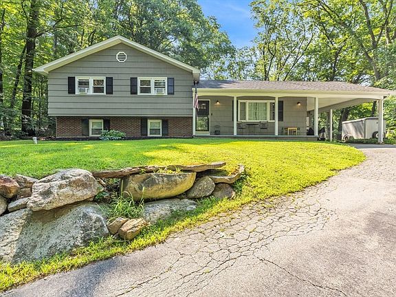 This multi-level home has so much to offer. Sitting on a .6-acre corner lot & boasting 4 bedrooms, 1.5 baths, a finished basement, fenced-in yard & carport with extra storage. Step onto the welcoming front porch with room to relax and enjoy a beverage, then through the door into your open concept main level w/ warm hardwoods. The stone counters in the kitchen are to die for, with a cute breakfast bar overlooking your open concept DR/LR space great for hanging out or entertaining. Follow the slider off the DR out to your gorgeous patio & fenced-in yard for more entertaining & play space. The main bedroom has access to a large bath with jacuzzi tub & shower. 2 more bedrooms finish the upper living space. Make your way downstairs from the main level into your finished basement space with a brick fireplace for cozy movie time or more space for entertaining. Off this space you will find laundry, another updated half bath, & the 4th bedroom. Close to highways, shopping & amenities.