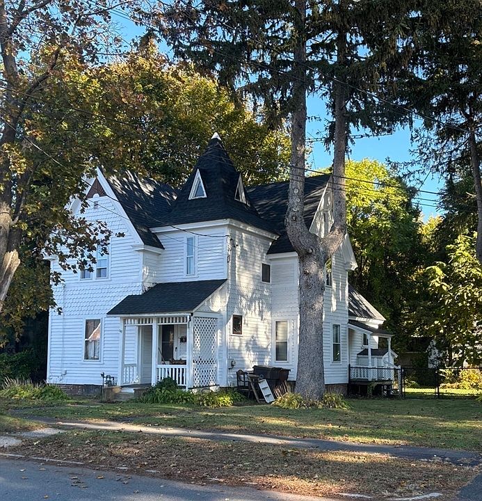 Nestled between the MA Pike and Downtown Westfield you will find this Charming Colonial at 4 Columbia Street! This great home with flexible floor plan boasts original unique woodwork and stained glass windows with many modern updates! The first floor offers a living room, dining room, kitchen and full bath plus additional room with pocket doors can easily be used as home office, den or guest space! Upstairs you'll find 3 bedrooms with updated windows and ample sized closets for the era plus access to a back storage area off the main bedroom that could be converted to even more closet space or provides ample storage for your seasonal items. Step into the basement and you'll find 110 amp electrical service, a newer furnace and water heater (APO) and washer and dryer hookup plus a separate storage room with yard access through a full sized door (not a bulkhead). Head outside to find a nice sized 1 car garage and fenced backyard. Great opportunity for a savvy buyer looking to build equity!