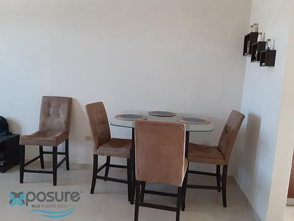 Three-level apartment with three bedrooms, two and a half bathrooms, living room, kitchen, dining room, three parking spaces and a terrace. It includes a 175-gallon water tank, three air conditioners and four fans, among others. Complex with controlled access and swimming pool and gazebo facilities. Located in a good neighborhood near supermarkets, gas stations and the beach. Coordinates: 17.9835999,-67.192846..