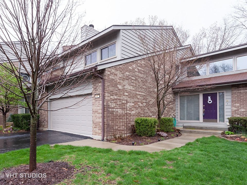 Here you will feel perfectly at home in your private retreat from the hustle bustle world nestled in the woods. Enjoy entertaining on the large deck with woodsy view. This town home has been fully updated with new windows & patio doors. You will love the hardwood floor and a kitchen with custom cabinetry and granite countertops. Warm by the living room fireplace. The finished basement has a full bathroom, gas fireplace and above grade windows. For the piece de resistance, a luxurious master bath with heated floor and heated towel rack. Here is a marvelous location with pleasing views and with a very short walk to the metra station you can be on your way to downtown Chicago. Some of the personal property is labeled with prices for sale but must remain for staging until property is sold. Ask agent about details. New sump pump 2018, Roof was replaced in Sept 2012. Future roof replacements are a home owner expense. Assoc. does the exterior staining about every 5 years.