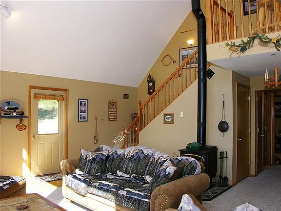 This cozy 1500+ sq ft home offers a lot of space with a great floor plan. Home sits on one acre of level ground. Great views of the mountains and Pine. High efficiency wood Stove. Large Deck, Hot Tub, 1 car attached and a 2 car detached garage plus RV parking.