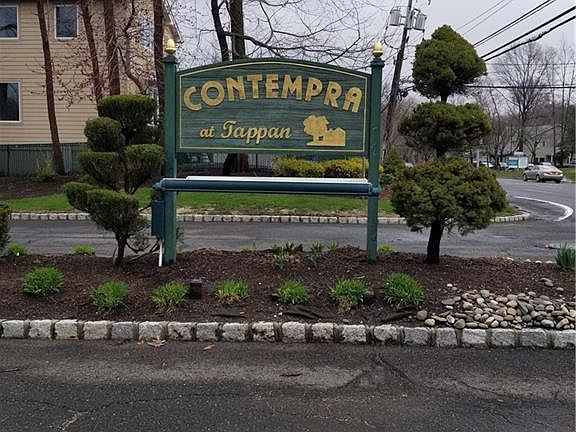 LOCATION LOCATION LOCATION describes this 2 bedroom, 1 1/2 bath Townhouse located in sought after complex of Contempra Circle at Tappan. Main level boasts living room with vaulted ceiling, fireplace and 2 skylites. Kitchen features built in snack bar, tile floor and tile countertops. Enjoy relaxing in sunken sunroom with built in bookcase with mirrors and sliders to yard. Dining room with mirrored wall is perfect for entertaining. Second floor has master bedroom with trapezoid window and cathedral ceiling, second bedroom and full bath with jacuzzi tub and stall shower. Near NY/ NJ border... perfect for commuting!