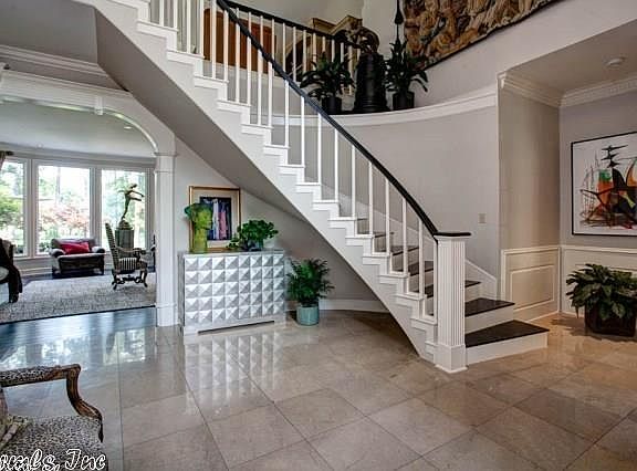 Tucked discreetly behind gates on one of the Estates neighborhoods on the Chenal golf course this home has been renovated with taste and style.Gracious public spaces radiate from the two-story entryway.Formal and informal entertaining areas flow into the open chef's kitchen.Main level master suite has been completely updated.Upstairs are four generous bedrooms/baths, media/playroom and artist studio. Professionally landscaped grounds feature a large patio and pool area with bath. Beautiful golf course views