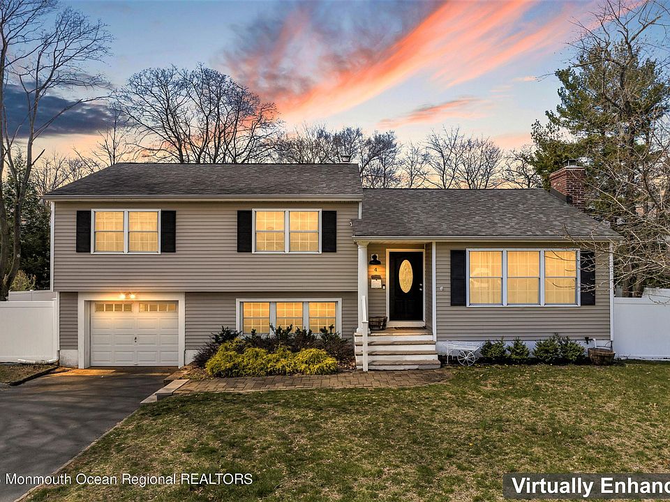 Just Move Into This Custom 3/4 BR 2 1/2 BA Home In The Heart Of Lincroft Village Featuring An Inviting Front Porch & Foyer Opening To A Living Rm W/ Wood Burning Fireplace, Dining Room W/Slider To The Paver Patio & Custom Cabinet, Granite Counter Kitchen W/SS Appls. There Is A Primary BR Suite W/Updated Bath, WIC & 2nd Closet, 2 Addt'l Ample Size BR's W/Double Closets, Modern Double Sink Vanity Full BA & Attic Storage. The Lower Level Finished Area Features An Office Or Guest BR, Updated Powder Rm & Mud Rm Leading To The Spacious Paver Patio. The Basement Offers A Finished Play/Media Rm & Laundry/Utility/Storage Rm. The Exterior Boast A Multi Tiered Paver Patio & Hardscape For Entertaining, Fire Pit/Lounge Area & Shed In A Vinyl Fenced In Yard. This Home Offers A Brand New Roof And Sits Close To Lincroft Town Village Shopping, Schools, Thompson Park, All NYC Public Transportation Routes And Is Just Minutes To Downtown Red Bank & Jersey Shore Beaches.
