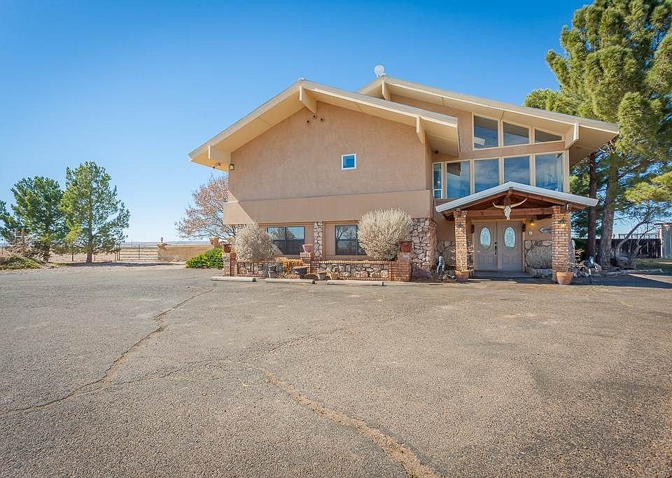 Horse lovers take notice! There is nothing cookie cutter about this two story home sitting on 17 acres MOL! This is the perfect home for entertaining! Sprawling upper floor flows so that you can be part of everything. Or, take it out back to watch the gorgeous sunsets over your mountain view! Separate downstairs gives guests or kids their own space, complete with office, game room, and entry/atrium. Entire fenced property includes roping arena, horse stalls, and dog runs as well as a covered work space.