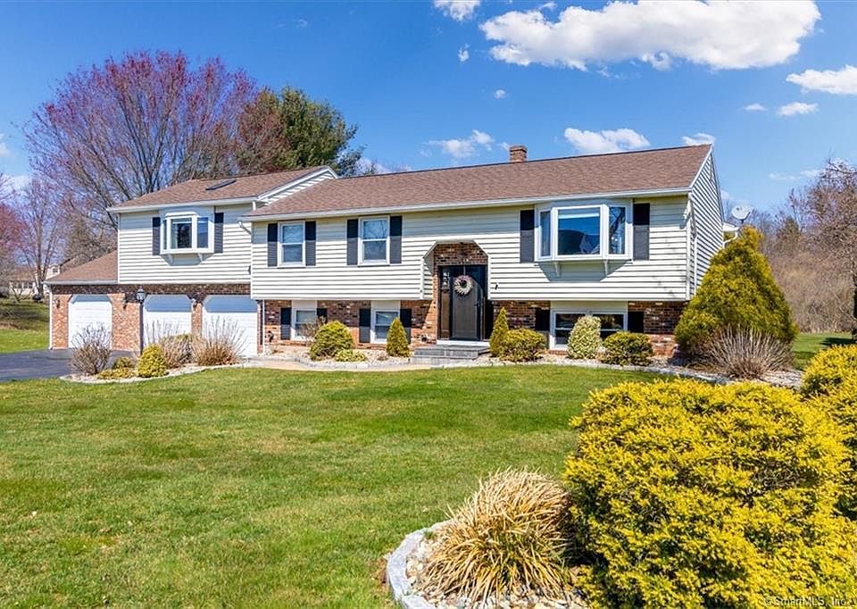 If an amazing expanded floor plan with lots of space and .69 acres with a spectacular, outdoor entertainment yard is what you are looking for, then come visit this updated Contemporary, Raised Ranch located minutes from the schools, Route 5, shopping, I-91 and train station. The interior offers an open floor plan with kitchen, dining and living room flowing together. The kitchen with granite counters, subway tile backsplash, island, cooktop stove and double oven with a coffee bar area is open to the dining area and living room. There is crown molding throughout the main level. The living room, kitchen and dining area has engineered, walnut wood wide plank floors. The living room has a propane stove, ceiling fan and sliding door to the yard. The primary suite is off the main living area. It offers engineered, walnut wood wide plank floors, 2 walk-in closets and an area that can be used as an office or exercise area. The Primary bath with double sink, beautiful cabinets, linen closet and a walk-in shower with tile floors. The other 2 bedroom have wall to wall carpet and ceiling fans. The larger of the bedrooms has 2 large closets. The main bath has a tub with shower, granite topped vanity and a linen closet. The lower level offers a family room or playroom with CoreTek floors, a half bath, laundry room with washer and dryer (dryer will be a different working dryer than seen at showings) and a rec room with pool table that conveys with the property. (Continued next page) The rear yard provides a great outdoor entertainment space with built-in kidney shaped, fenced pool with diving board and slide. There is a concrete patio to relax on and a space to grill and pool house. But wait, that’s not all. There’s a newer gazebo, fire pit does not convey and a great playscape and don’t forget the 3-car garage with access door to rear yard, underground utilities and underground sprinkler system. The property is professionally landscaped, well maintained and move-in ready. There’s a newer gazebo with fire pit and a great playscape and don’t forget the 3-car garage with access door to rear yard, underground utilities and underground sprinkler system. The property is professionally landscaped, well maintained and move-in ready.