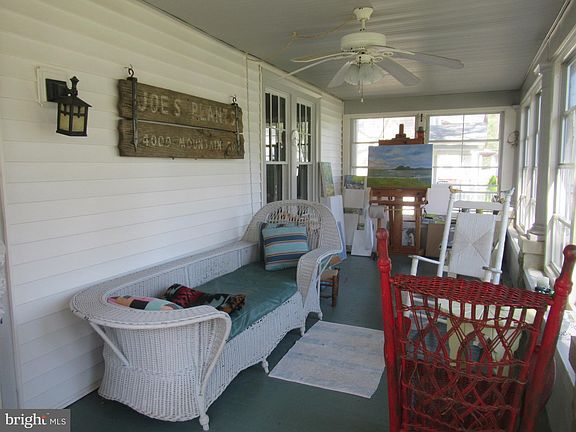 So many extra features in this charming craftsman style home. Large front porch with vinyl windows is a great place to while away the afternoon or have morning coffee. Foyer has unique light fixture, open stair and a lovely stained glass window. Large living room with wood burning fireplace has french doors, formal dining room, and large kitchen with breakfast room , plenty of storage. Huge mudroom has plenty of room for crafting or hobbies, and has washer and dryer. Newly renovated half bath is tucked away under the front stairs. There are three bedrooms on the second floor, a full bath, and an office space. The full attic has plenty of storage. There is a full basement where the oil furnace is located, it has a sump pump and can be accessed by both the inside and outside. The roof does have a leak, the asbestos shingles are in need of replacement. Owner is willing to work with buyers. This house does need some repairs. It is charming, and has a lot to offer! Lovely landscaped yard, close to the marina.
