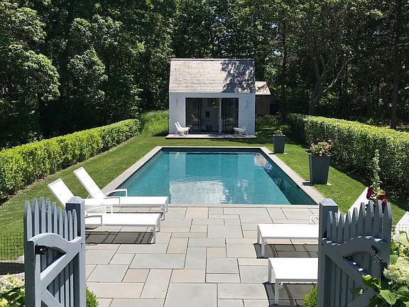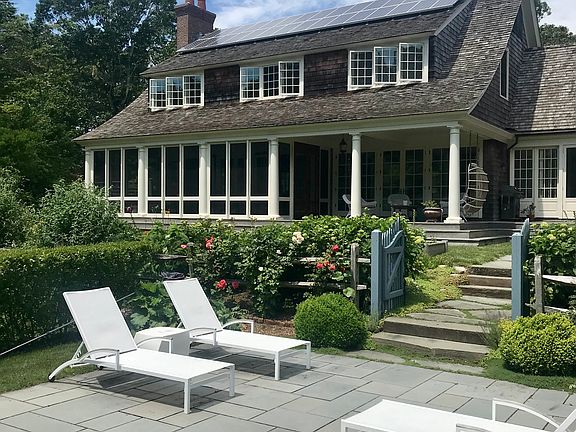 Rental Registration #: 25-068 Gorgeous in Amagansett. This shingle-style house with contemporary light-filled interiors is set in the Devon Highlands estate area. Very private with lush gardens, but centrally located less than a mile to ocean beaches, mile to Gardiner's Bay beaches, and 2 miles from the Amagansett Farmers Market and village. (Several bikes provided.) Perfect set up as the first floor of the main house is a gracious open area. The ten-foot-tall coffered-ceiling living room opens with three sets of oversize French doors to a covered porch that runs the length of the house. There are three areas on the porch overlooking the gardens and pool, one with porch swing and wicker furniture; and two areas screened-in -- a teak dining table area and a lounging area with sofa and chairs.A Chef's delight. The open chef's kitchen with marble counter tops, large island with stools, two each Miele ovens, dishwashers and sinks makes meal preparation and entertaining easy. The dining table seats ten. There are three sets of French doors in the dining area that open onto the full-length covered porch. The flow from the indoor to outdoor area is great for entertaining and flow. Dividing the first floor of the house is a breezeway/mudroom tiled in honed slate. This room separates the three-room primary suite on the first floor. Opening off of the breezeway is a laundry room with a high-efficiency washer and dryer, a powder room and an outdoor shower.The primary bedroom has large windows facing pristine woods and a spacious, windowed dressing room/office. The bath has a double marble-topped vanity with two sinks. The view is over the hydrangea flowers into the garden. There is a Bain Ultra deep soaking tub and a large glass-enclosed shower with hand spray. The master suite includes a media room with a large sectional sofa, smart flat-screen TV with Apple TV and built-in desk for two computers.The second floor consists of two bedrooms with en-suite bathrooms at opposite ends. The center room has two twin beds and a crib. (See second floor plan in photos). These three rooms open into the windowed, oversize landing that allows sunlight to spill into the upstairs room and the first floor living room. The pool, down a few bluestone steps from the breezeway, is the focal point of the two-acre property. It has a 16' X 44' heated Gunite pool completely fenced from the house and a bluestone patio with lounge chairs. Recently added is a fabulous new pool house with a full wet bar and an indoor bathroom including a shower. The house has roof-top solar panels that provide electricity, three-zone central air conditioning, and a high-efficiency hot water heater.The house is set up for easy summer living with several bikes with helmets and baskets, wetsuits, surfboards, beach towels, chairs and umbrellas. The two-car garage has an EV charging station. A great option for your summer vacation! BEDROOMSBedroom 1: 1st Floor, One King Bed, Air Conditioning, Full Ensuite Bathroom, Walk-in ClosetBedroom 2: 2nd Floor, One Queen Bed,Air Conditioning, Full Ensuite Bathroom, Standard ClosetBedroom 3: 2nd Floor, center room, Two Twin Single Beds,Crib, Air Conditioning, Standard ClosetBedroom 4: 2nd Floor,One Queen Bed, Air Conditioning, Full Ensuite Bathroom, Standard ClosetBATHROOMSBathroom 1: Full Bath, First Floor/Main Floor, Ensuite, Shower, TubBathroom 2: Full Bath, 2nd Floor, Ensuite, ShowerBathroom 3: Full Bath, 2nd Floor, Shower/Tub ComboBathroom 4: Half Bath, First Floor/Main FloorBathroom 5: Full Bath, Pool House First Floor/Main Floor, Ensuite, ShowerOUTDOOR AREA POOL/SPAS Deck/Patio (Uncovered), Lounge Chairs (8 Chairs), Patio Furniture (Table, Chairs), Grill (Gas), Bicycle (4 Adult Bikes), Beach Umbrella, Outdoor Shower (Hot + Cold Water), Beach Chairs (8 Chairs), Cooler, Fence Around The Yard, Fence Around The Pool, Private Pool (Outdoor, Heated, Freshwater)