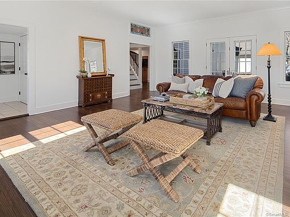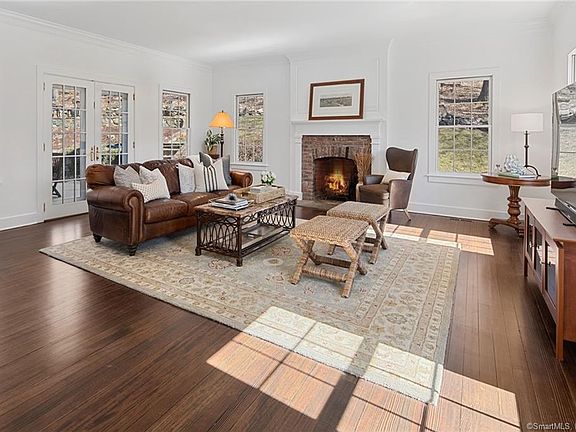 Quintessentially New England, this classic farmhouse blends timeless style with modern amenities. Beautifully updated interiors are flooded with incredible natural light and offer unexpected surprises around every corner with original details and the unique charm of an antique home. Originally a family farm and once a local pub, the original wood bar remains in the home. A third level bonus room serves as the perfect playroom, gym, home office or au pair suite. Outside, flowering trees and tiered gardens surround the sylvan landscape and the terrace offers a private space to relax to the sound of the gentle waterfall. The barn, originally a dairy barn, is weatherproofed and equipped with water, electricity and cable. Poised on a beautiful street in Old Hill, you can enjoy the privacy of the idyllic acreage while remaining two minutes from the neighborhood store and five minutes to downtown Westport.