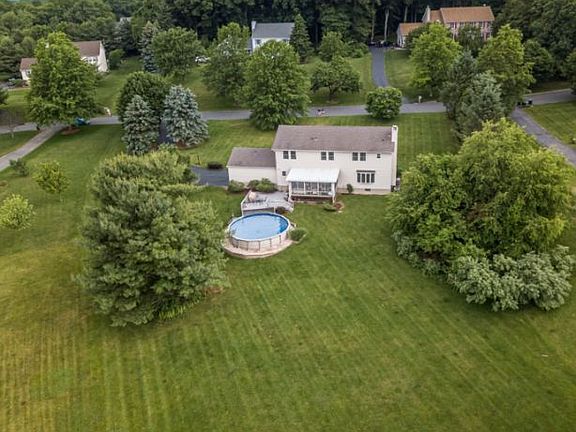 Spacious 5 bedroom, 2.5 bath colonial with 2 car garage and fin basement. Great location in cu-de sac. Large eat in kitchen with breakfast bar, pantry , and oak cabinets. Sliders off kitchen to 3 seasons room great to entertain. Large deck w above ground pool great for summers parties. Family room with wood burning fireplace and large picture window offers great natural light. MBR with 2 double closets, MBA remodeled w tile surround tub shower and double sink with quartz counters. All 5 bedrooms spacious with great closet space. Updated guest bath. Laundry conveniently located on first floor. Basement offers finished recreation area and large storage room. Virtual tour available.