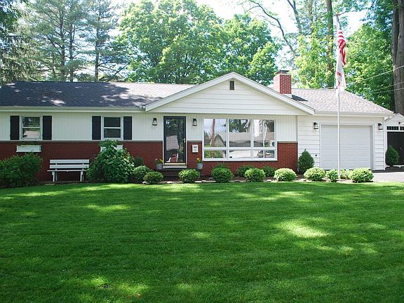 Mid-Century Modern Rhinebeck Village Ranch. Spacious one level living. Close to beach/Crystal Lake, or School. Hardwood floors, fireplace with built-ins, large eat in kitchen, family room with radiant heat, beautiful gardens surround patio for outdoor entertaining. Attached one car garage, garden shed, new roof 2016, central air, and whole house generator.