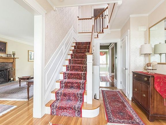 Welcome home. This beautifully maintained traditional New England Colonial offers all you need for comfortable, gracious living. A major renovation in 2000 added space to its already generous living area. Step inside to elegant, sun splashed rooms, including a formal living room with a fireplace & formal dining room. The stylish eat-in kitchen boasts cherry cabinets, granite counters, stainless steel appliances, a breakfast bar and a separate dining area with a wine fridge walls of cabinet storage,with instant access to the private patio tp entertain in warmer weather. The finished lower level includes a family room, with wet bar, full bath, laundry room,fabulous storage closets and shelves plus a workout area. Upstairs on the second level, you will enjoy a master bedroom with a large private bath, 3 additional nicely sized bedrooms and a family bath. All this is found on a lovely lot in a convenient location that places shops, schools, express bus,commuter rail, highways within reach.