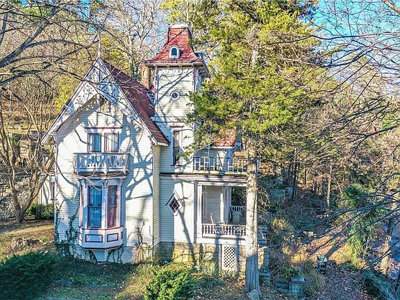 Built by pioneer physician in 1883. This well documented Historical Treasure is located in the Heart of Eureka Springs. The Victorian Gothic has the original woodwork with some brought in from Switzerland over 100 years ago. In every room you will see the history coming to life. Bring this beauty back to it's original beauty. Yard is terraced with a koi pond. Carriage house for extra storage or a nice sized workshop. The location and history of this home makes this a unique and very exciting property.