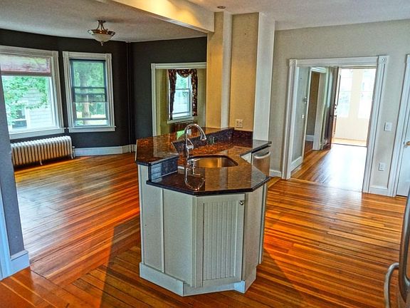 A Bright spacious and open home with a brand new modern kitchen. All new stainless steel appliances, granite counter-tops. Newly refinished hardwood flooring throughout. The new modern kitchen has a large center island that opens up to the dinning area. There is also a new wine fridge and bar area with a bright open slider the the new back deck. There is a half bath on the first floor and a full bath by the bedrooms on the second floor. All three bedroom have large deep closets. There is a washer and dryer in the large basement with tons of storage, and a 1 car garage, And don't forget about the large sun porch off the front of the house.?