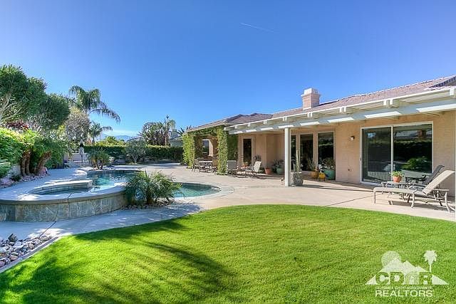 Luxury awaits your arrival in this Rancho Mirage property in the gated community of Versailles. This one of a kind Marquis floorplan, with attached casita, offers 3,884sf and has been completely customized. No detail has been missed in this highly upgraded 4 bedroom + Office, 3.5 bathroom home featuring an elegant entry foyer, double glass doors, granite kitchen, separate living , dining family rooms, built-in cabinetry and moldings, amazing window treatments and many designer finishes throughout the home. This magnificent home sits on an oversized lot on an ideal cul-de-sac and is entered through a lovely covered private courtyard, water feature and beautiful stonework. The rear yard is a perfect retreat and is beautifully accented by lush landscaping, built-in BBQ, a pebble tec salt water pool with elevated spa and plenty of covered patios for outdoor dining and relaxing. This home is sure to provide endless entertainment and enjoyment. Plus, low HOA dues & electric bills with IID.