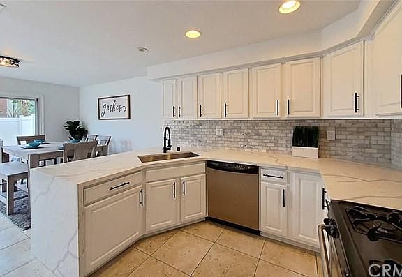 Stunning and Stylish 3 Bed 2.5 Bath Townhome ideally located across from Rancho Santa Margarita Lake! If you are looking for turnkey and tastefully remodeled then you will love this home. Fresh new paint with vaulted ceilings, a brick fireplace, and a light & bright kitchen that is updated with Quartz countertops, stainless appliances, and a breakfast bar for casual counter eating. Open floor plan flows from the updated Kitchen into Dining Room, Living Room and outdoor entertaining space. Multiple high windows that bring in tons of light! Newly landscaped patio, newer vinyl fencing and astro turf for the "green minded". Conveniently located powder room off living room, and spacious bedrooms, all located upstairs. Huge master suite with vaulted ceilings with tons of light! Plush new carpet upstairs and bedrooms. Remodeled Bathrooms with new vanities. 2 car attached garage. Residents enjoy Swimming Pool & Spa, Sport Courts, Clubhouse and membership to RSM Lake & Beach Club. Walk to Award Winning schools, shops, restaurants. Enjoy the nearby association pool and spa. This home is just across the street to the Mercado shopping center. No Mello Roos & low HOA's.