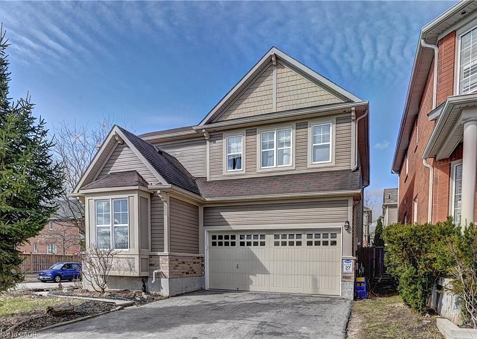 ABSOLUTELY THE BEST 4 BEDROOM, DOUBLE CAR GARAGE DEAL IN NEWER CAMBRIDGE!!! 4 Bedroom Double Car Garage Single Detached Home in High Demand Millpond in Hespeler, On a Premium Corner Lot Overlooking the Trail Systems & Greenspace & Park. Beautiful Inviting Porch Lead you to the main Entrance. Completely Carpet Free Home With Modern Laminate Floor ,Ceramics & Hardwood. Hardwood Staircase With Wrought Iron Spindles. Main floor With an Open Concept Living & Din Rm. Powder Rm. Family Rm with Hardwood Floors. Lovely Eat in Kitchen With Added Pantry & Custom Backsplash.+ Gorgeous Granite Countertops. Sliders to a Nicely Landscaped Backyard. 2nd Floor With 4 Bedrooms + a Den(Laundry Converted to Den & can be Changed Back to 2nd Floor Laundry) Master With Walk In Closet & 5 Pce Ensuite Washroom With Granite Counters. 2nd Full Common Washroom .Also Features Granite Counters. Gorgeous Balcony With a View Of the Greenspace & Apple Park. Larger Unfinished Basement For Storage. Superb Hespeler Millpond Location With 3 Parks, 2 Schools, Trail System, & Beautiful yet Quaint Downtown on The River. Parking for 4 cars on the Driveway(+ 2 In the Garage). Newer Kitchen Appliances.