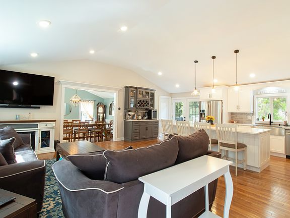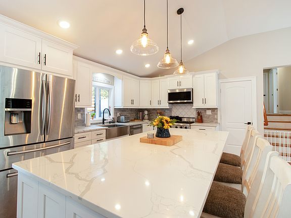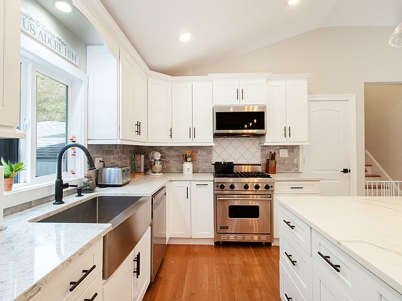From the moment you step inside, this home tells a story of thoughtful craftsmanship and modern comfort. Over the past five years, it's been beautifully reimagined-The kitchen shines as the heart of the home, with quartzite countertops, a Viking stove, and a custom coffee bar with glass cabinetry. The home features andersen windows and rich hardwood floors that bring warmth throughout. Just off the kitchen, the sunlit formal living room is perfect for gathering, while the nearby dining room offers flexibility-ideal as-is or for a future sunken lounge. Up a few steps are three spacious bedrooms, including a primary the with deep double closets. All bathrooms have been rebuilt from the studs up with marble cobblestone floors. The lower level offers slate flooring, a cozy fireplace wall, full bath, private entrance, and dedicated office-perfect for a den or in-law suite. Off the kitchen, a half bath and laundry room to add convenience with ease to the breezeway that leads to a dream garage-featuring a tall bay for a lift, mezzanine storage, and new insulation, a tradesman dream! Step outside to low-maintenance multi level Trex deck, and paver patio designed for entertaining and relaxation. With all-new plumbing, electrical, HVAC, and Energy Star features, this home is truly move-in ready-crafted to last, built to enjoy.