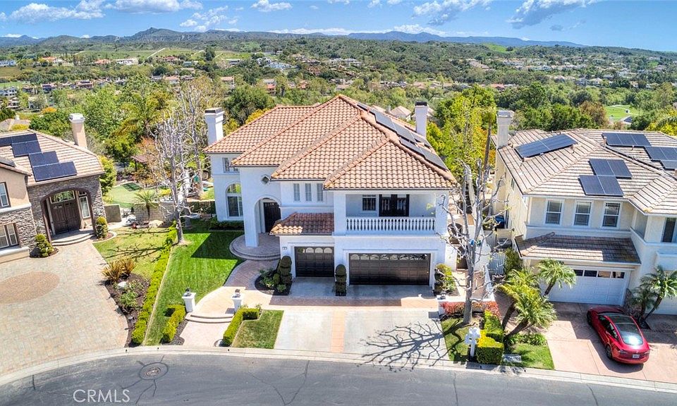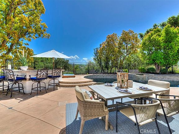 Situated on a serene single-loaded cul-de-sac, this stunning 6-bedroom, approx. 3,961 sq. ft. home offers the perfect blend of modern elegance and timeless charm. Thoughtfully upgraded with no detail overlooked, the residence showcases contemporary finishes that balance sophistication with warmth. From sleek design elements to inviting textures, every room exudes a sense of comfort and refined taste. The spacious, light-filled floor plan is designed for both entertaining and quiet family moments. Gather around the fireplaces in the living and family rooms for cozy evenings, or enjoy the versatility of the main-floor bedroom with an en-suite bathroom—currently used as a playroom, it can easily serve as a bedroom or executive office. Step outside to your private backyard oasis, where a sparkling pool is framed by breathtaking views, creating the perfect setting for relaxation or hosting unforgettable gatherings. The yard also features generous grassy areas, a built-in BBQ, and multiple balconies that provide serene views of the surrounding natural beauty. Additional highlights include owned solar, a 3-car garage, abundant storage, and luxurious details throughout, ensuring both style and functionality. Nestled in the exclusive gated community of Coto de Caza, this home offers access to unparalleled amenities. Residents enjoy world-class golf courses, equestrian facilities, scenic hiking trails, and a vibrant social club with a range of membership opportunities. Living here means embracing an active yet tranquil lifestyle, surrounded by natural beauty and a welcoming community. Come experience 4 Danville Lane—your dream home awaits!