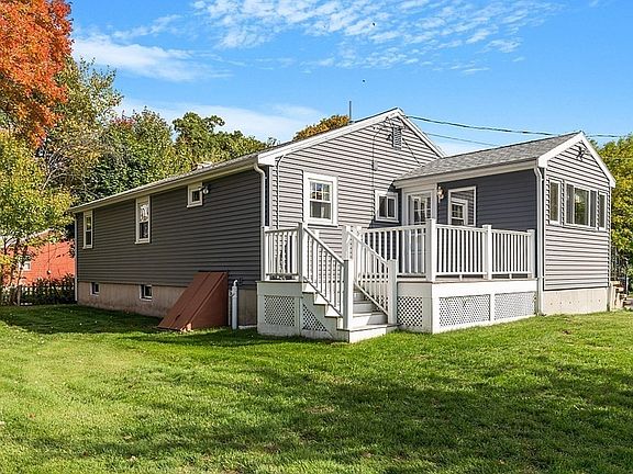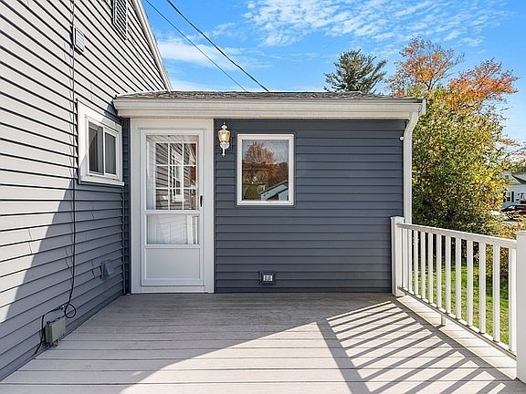ABSOLUTELY PERFECT 1 level living w/ all the major updates done just waiting for you to move in and enjoy! NEW roof, heating system, oil tank, & bulkhead, UPDATED electrical, windows, exterior doors, plumbing, Maple, stainless & Corian kitchen and tiled bath! Oak & ceramic tile flooring throughout entire first floor. First floor dedicated laundry room, large bath w/ walk in shower, separate tub, large vanity & linen closet, breezy sunroom leading onto a sunny composite deck, spotless & dry heated basement featuring a large family room w/numerous replacement windows offering daylight & ventilation & a huge storage/ workshop &utility area w/ exterior access to the backyard. Poured concrete foundation allows possible upward expansion as does the 100 X 100 perfectly level lot. Washer, dryer and refrigerator will stay! Whether you're downsizing, first time homebuyers or anything in between, this lovely home is a practical & smart choice! "TOWN SEWER"