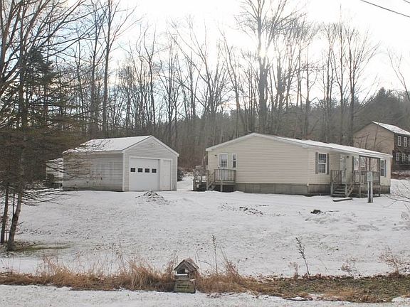 This 2003 manufactured home is located on a large corner lot with .75+/- acres. Includes a detached garage. The bright interior of this gently used home is inviting and move-in ready with a mudroom/laundry, a workable kitchen with lots of cabinets, spacious/open concept living/dining, master bedroom with 3/4 bath, two more bedrooms at the other end of the house with full bath.