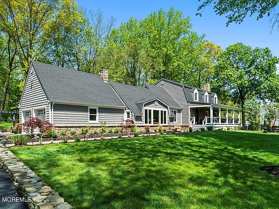 HIGHEST & BEST -MON 5/19 by 12noon. Tucked away on a quiet cul-de-sac in prestigious Colts Neck, this stunning Colonial offers the perfect blend of farmhouse elegance, modern luxury & peaceful privacy. Situated on a beautiful landscaped lot with an oversized driveway, as well as a private backyard oasis & a mahogany wood covered front porch, this home boasts multiple tiered decks, a custom firepit creating a serene retreat. Step inside to discover a warm & inviting interior featuring wood floors thu-out & a thoughtfully designed layout. At the heart of the home is the Chef's dream kitchen - fully updated & equipped with high end SS appliances - including an oversized refrigerator & freezer, 2 expansive islands, a spacious dining area., a cool bar & brick wall- perfect for entertaining. industrial inspired lighting adds a modern edge, while the riverstone fireplace enhances the kitchen & dining room's charm. Next to the kitchen is a flex room currently used as an office - it features decorative wood beams on the ceiling for architectural interest & glass sliders for easy access to the blue stone patio outdoors. The spacious gathering room is flooded with natural light from oversized windows & multiple sliders that open to the rear patio. A second riverstone fireplace adds warmth to the gathering room. On the second level there are 4 generous sized bedrooms and 2 baths. The primary bedroom features a stone tiled wall and an ensuite bath with stone tile & a walk in closet, combining functionality with high end finishes. The recently finished heated basement expands the living space, offering endless possibilities for a home gym, theater, game room, office etc., It also offers a finished storage crawl space (sheet rocked & epoxied floor) & a Cedar Closet. Exterior is partially fenced/electric dog fence & includes a whole house generator. This home is a rare find and checks so many boxes. Book your showing today and enjoy touring this captivating home! Close to GSP, NJ Transit, shopping, Jersey shore beaches.