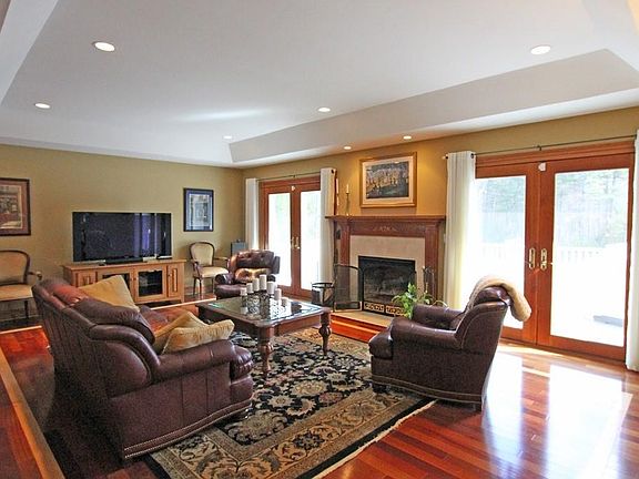 Exquisite executive ranch nestled on 2+ acres located on a cul-de-sac and featuring a flowing open layout. Gleaming cherry floors, tray ceilings, recessed lights, and impressive woodwork throughout this inviting home that's perfect for entertaining. Chef's kitchen with cherry cabinets, granite counters, and capacious island and breakfast bar open to window encased 4-season sun room. Great room with gas fireplace and double atrium doors leads to sprawling Trex deck running the length of the room and overlooking the tranquil yard. The library and formal dining room allow for large gatherings as well as cozy tete-a-tete's. The bedroom wing has three large bedrooms including master suite with walk-in closet and bath with jetted tub and separate shower. Great room plus bonus room in daylight lower level is attractively finished and perfect for a media room, pool table and game room, office, or home gym!