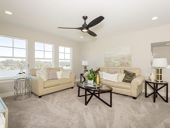 Stunning builder display home ready for immediate move in! This on-trend, Fischer and Frichtel, 1.5 story home will wow you with todays most desired finishes. This intimate enclave of homes is minutes from Historic Main St, restaurants, shopping, parks, Hwys 370, I-70 and 94/364. Features inc 4 BD, 2.5 BA, 2,567 s/f, main floor Mstr Suite, spa bath, large W/I Mstr closet, LVP flooring, 9 ft clngs with 11 ft in the Grt Rm, elec FP, transom windows, 42 inch cabinets with glass accent doors-crown-hardware, black SS appl, tile b-splash, island with seating bar, quartz c-tops, W/I pantry, soft close feature and more. The upstairs is amazing with 3 spacious bdrms, 2 W/I closets, bathroom, Loft and a step-up Bonus Rm. Additional features inc a damper system HVAC w/dual thermostats, low E windows, sec system, W/O bsmt, 12x12 composite deck and a patio. The curb appeal is elegant with brick, vert siding, carriage style gar doors, 3 car garage, arch shingles, landscape and an irrig system. WOW!