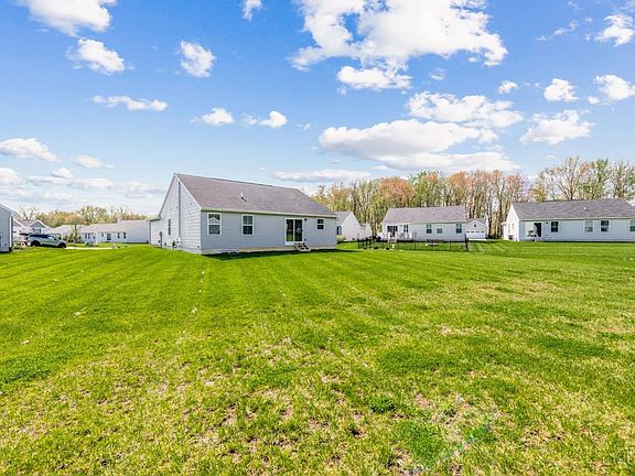 Discover low-maintenance living in this one-floor home on a large, premium half-acre cul-de-sac lot. Inside, find an open concept, neutral palette, upgraded kitchen with granite, stainless steel, and an island, plus a casual dining area leading to the backyard. The first-floor owner's suite boasts a private bath with dual vanities, walk-in shower, and oversized walk-in closet. Benefit from a convenient first-floor laundry and electric living room shades. The full basement offers an egress window and bath rough-in. Enjoy a huge, no-mow backyard thanks to HOA-included lawn care (cutting, edging, weeding, mulching) and driveway/sidewalk snow removal.