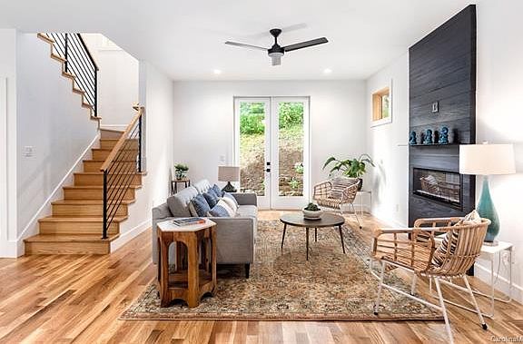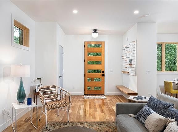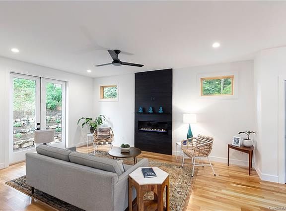New Construction in East West Avl! Green Built and Energy Star certified modern design with natural accents and materials blend perfectly to create comfortable living spaces that inspire. Built with attention to detail and stylish custom elements usually only found in custom homes and the pages of Dwell. The home utilizes the latest energy-saving technology for cost savings & a lower impact on the environment. Hardwood floors, quartz countertops throughout on the main and upper levels. Locally milled cypress Shou Sugi Ban treated wood & custom metal shelving highlight the wet bar & fireplace unit. Walls of windows + open floorplan = abundance of natural light. Private flex space with a full bath on the lower level provides an opportunity for a 4th bedroom, home office, or Airbnb/guest. Amazing location with winter views of the RAD & steps from greenways, parks, river access, & Haywood Road amenities. A one-car garage & storage room complete the checklist for active outdoor lifestyles.