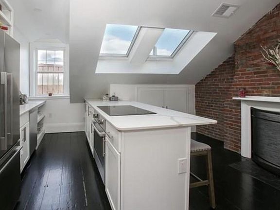 Newly renovated executive PH rental in the heart of Charlestown. Located in a historic brownstone, this modern & recently renovated floor-thru one + bed boasts unobstructed views of the Bunker Hill Monument & the Boston Skyline. Just steps fr. the best restaurants, Whole Foods, Starbucks & the "T," this space captures the character of Boston with its large exposed brick wall & wide plank floors, while offering modern design & new furnishings. Brand new, light-filled, state-of-the-art kitchen boasts SS appliances & large quartz island. Open concept has spacious dining area off kitchen. Wake up to views of the Boston Skyline from spacious master w/king-bed & large closet. Stunning loft offers extra room for guests. Light-filled bath w/tub/shower & tile surround. Expansive, common yard is the perfect place to relax. Cent. air, ample storage, in-unit laundry. Excellent alternative to high-rise apts.